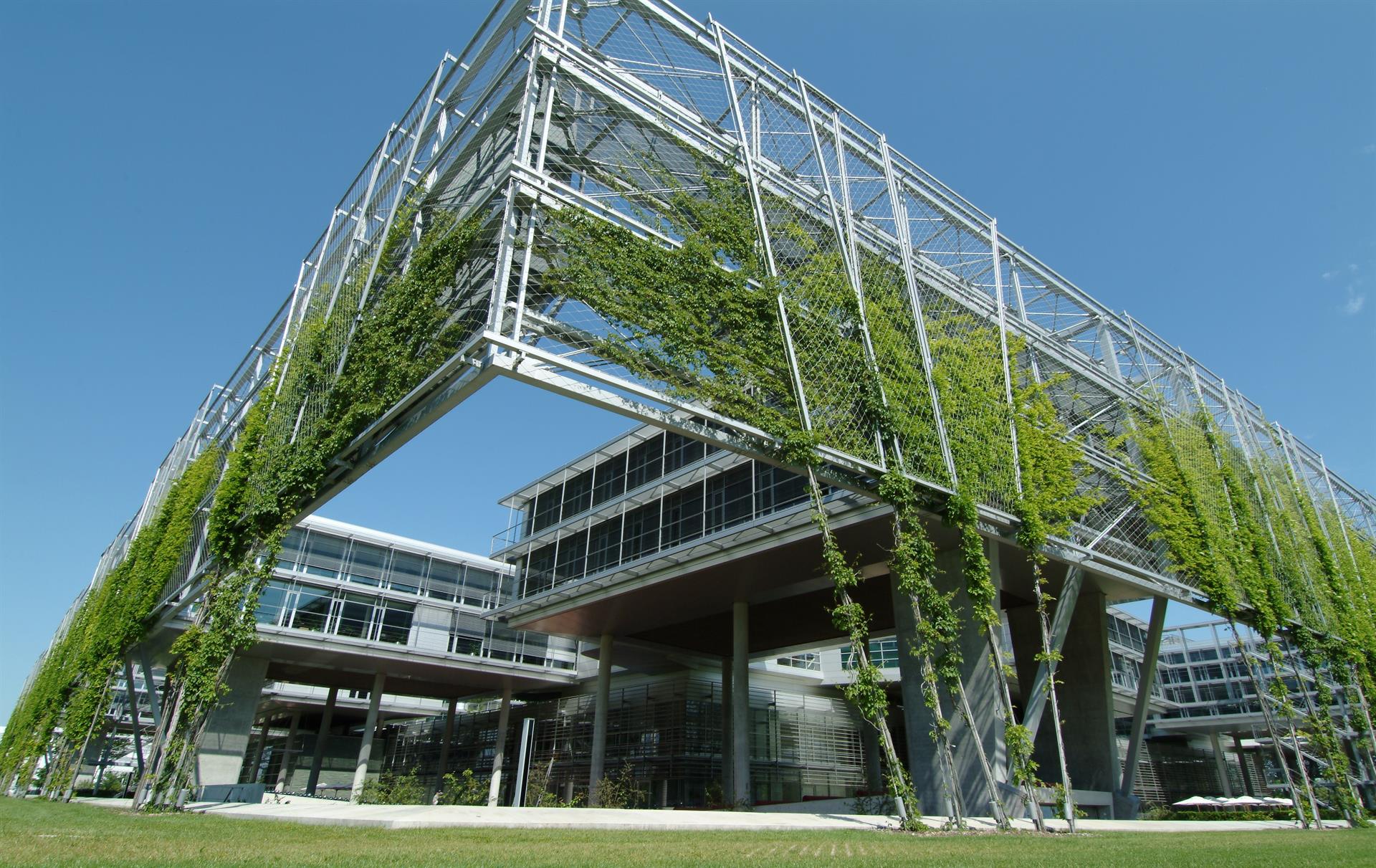 Neben öffentlichen Grünanlagen, Privat- und Firmengärten tragen zunehmend Gebäudebegrünungen zu einem wohltuenden Mikroklima bei. Im Münchner Umland realisierte May zwei bedeutende Projekte zur Fassadenbegrünung: In Unterföhring reduziert eine schwebende Hecke aus Blauregen und wildem Wein die Aufheizung von Bürogebäuden der Allianz (ehemals Niederlassung der Swiss Re). In Garching sorgt eine Netzstruktur mit ihrem Laub für Beschattung der Außenwände des Studentenwohnheims und damit für angenehme Temperaturen.