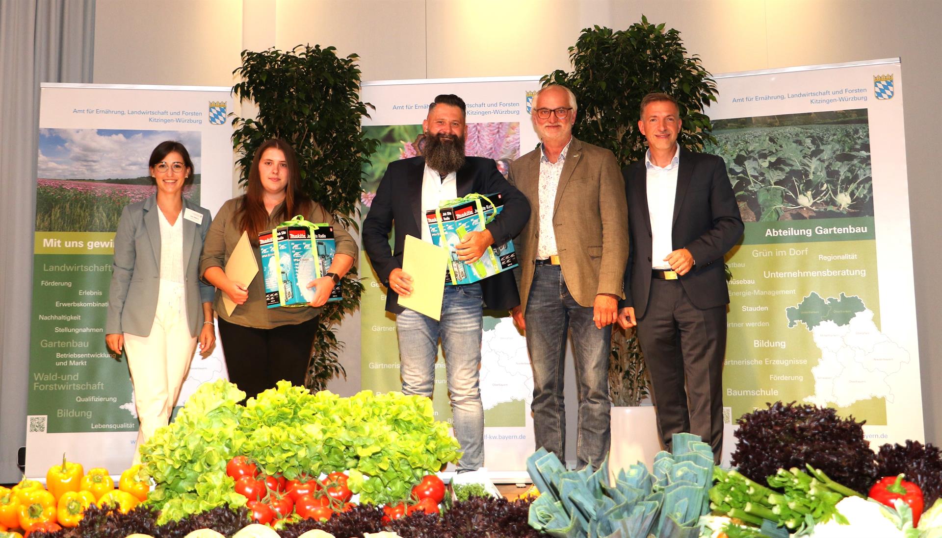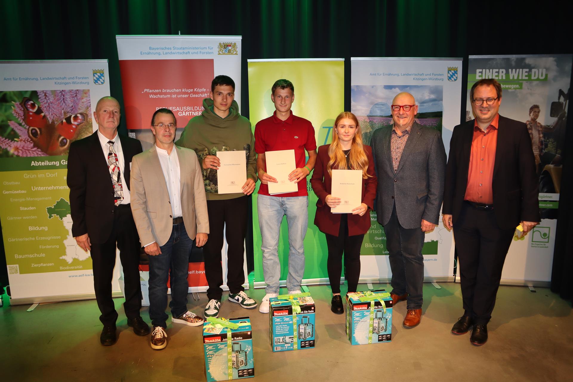 Am 21. September erfolgten die Feierlichkeiten im Antonia-Werr-Zentrum bei Wipfeld für 62 frischgebackene Landschaftsgärtnerinnen und -gärtner aus Unterfranken. Herausragende Leistungen in den Abschlussprüfungen erzielten Kerstin Drescher vom Ausbildungsbetrieb Garten Lindner und Sebastian Kirchner, der bei der Firma Gartengestaltung Alexander Plewa beschäftigt ist. Kirchner absolvierte seine Prüfung gemäß § 45 Abs. 2 Berufsbildungsgesetz. Diese Regelung ermöglicht den Prüfungszugang auch ohne reguläre Ausbildung. Bewerberinnen und Bewerber müssen jedoch nachweisen, dass sie bereits mindestens das Eineinhalbfache der vorgeschriebenen Ausbildungszeit im angestrebten Beruf arbeiteten. Dietmar Lindner, Präsident des VGL Bayern, zeichnete beide mit einer Ehrenurkunde und einem Baustellenradio aus.