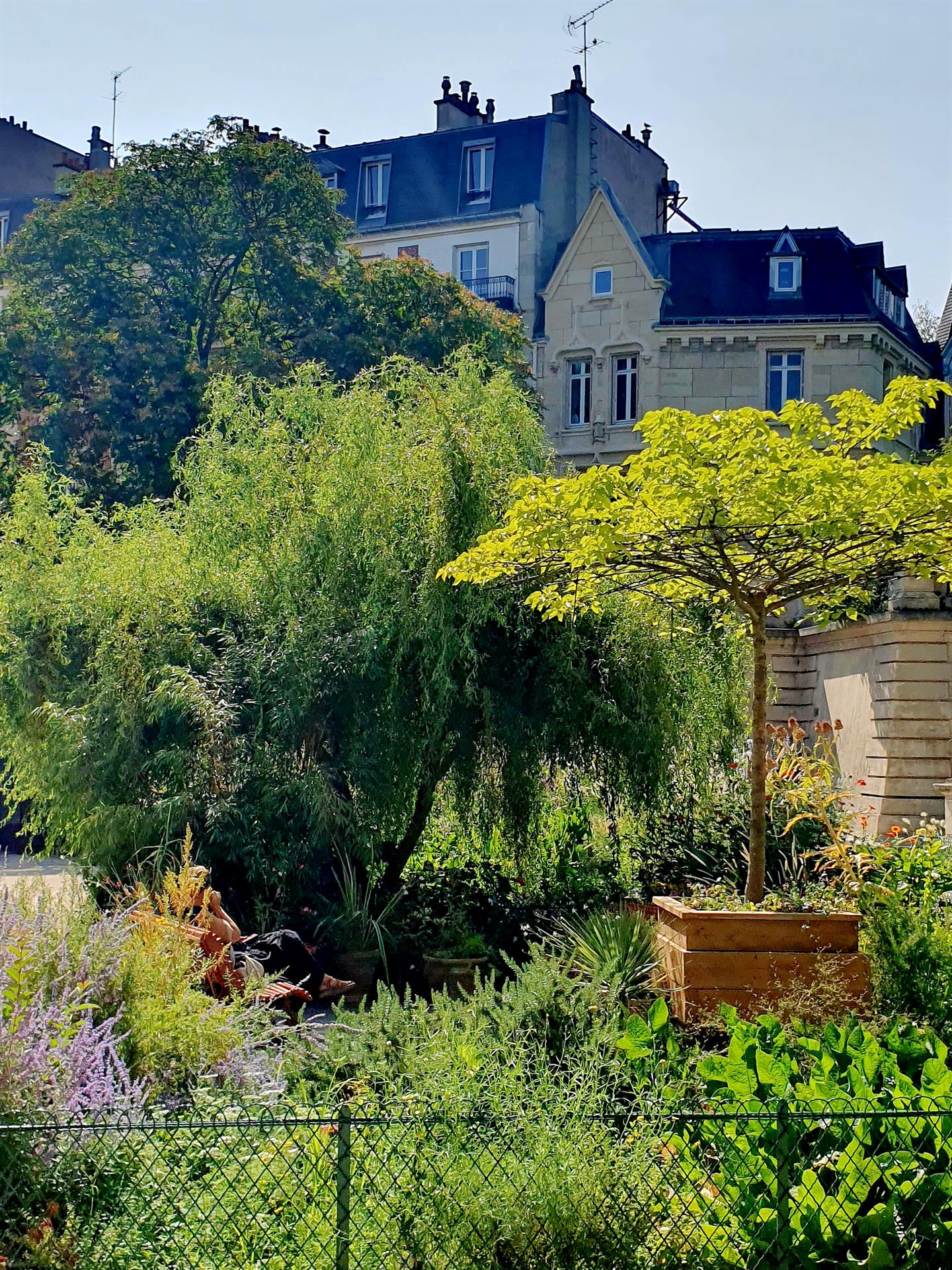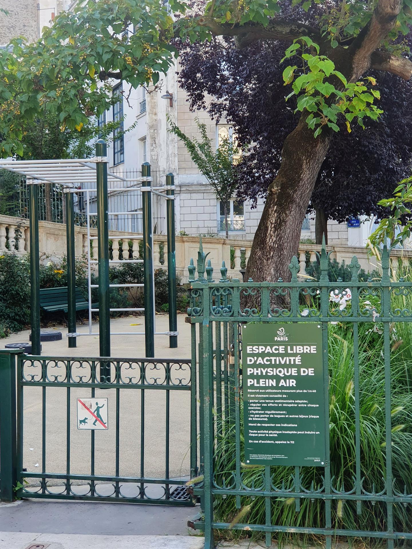 Interessant ist auch die Kombination von öffentlichem Freiraum und Sportmöglichkeiten. Es geht nicht nur um Boule, Ballspiele und Joggen – ganze Fitnessplätze gibt es, zum Beispiel auf den Plätzen vor den Kirchen in kleinen, abgegrenzten Gärten mit großer botanischer Vielfalt. Kinderspielplätze liegen im Schatten großer Bäume in schönen Gärten mit reichlich Sitzplätzen für die Erwachsenen. Es klingt alles zu schön, um wahr zu sein, und es mag sich auch nicht im ganzen Stadtgebiet so gelungen präsentieren, aber man gibt sich auf jeden Fall viel Mühe. Bürgerbeteiligung wird großgeschrieben und das sowohl in den historischen Tuilerien wie in den Vororten. Gemeinschaftsgärten laden mit QR-Codes zum Mitmachen ein. Hochbeete, Bienenkästen, Naschgärten … all das gibt es hier und macht einen sehr belebten Eindruck. Bestechend ist die niedrigschwellige Ansprache der Menschen vor Ort. Manches wirkt wie mit der Hand gemalt, aber einladend: „Wenn ihr Ratten vermeiden wollt, dann werft keine Lebensmittel weg“. Das versteht jeder! „Wie kommt der Fuchs in die Stadt?“ oder „Hast Du schon mal einen Igel gesehen?“ – Mitten in Paris.
